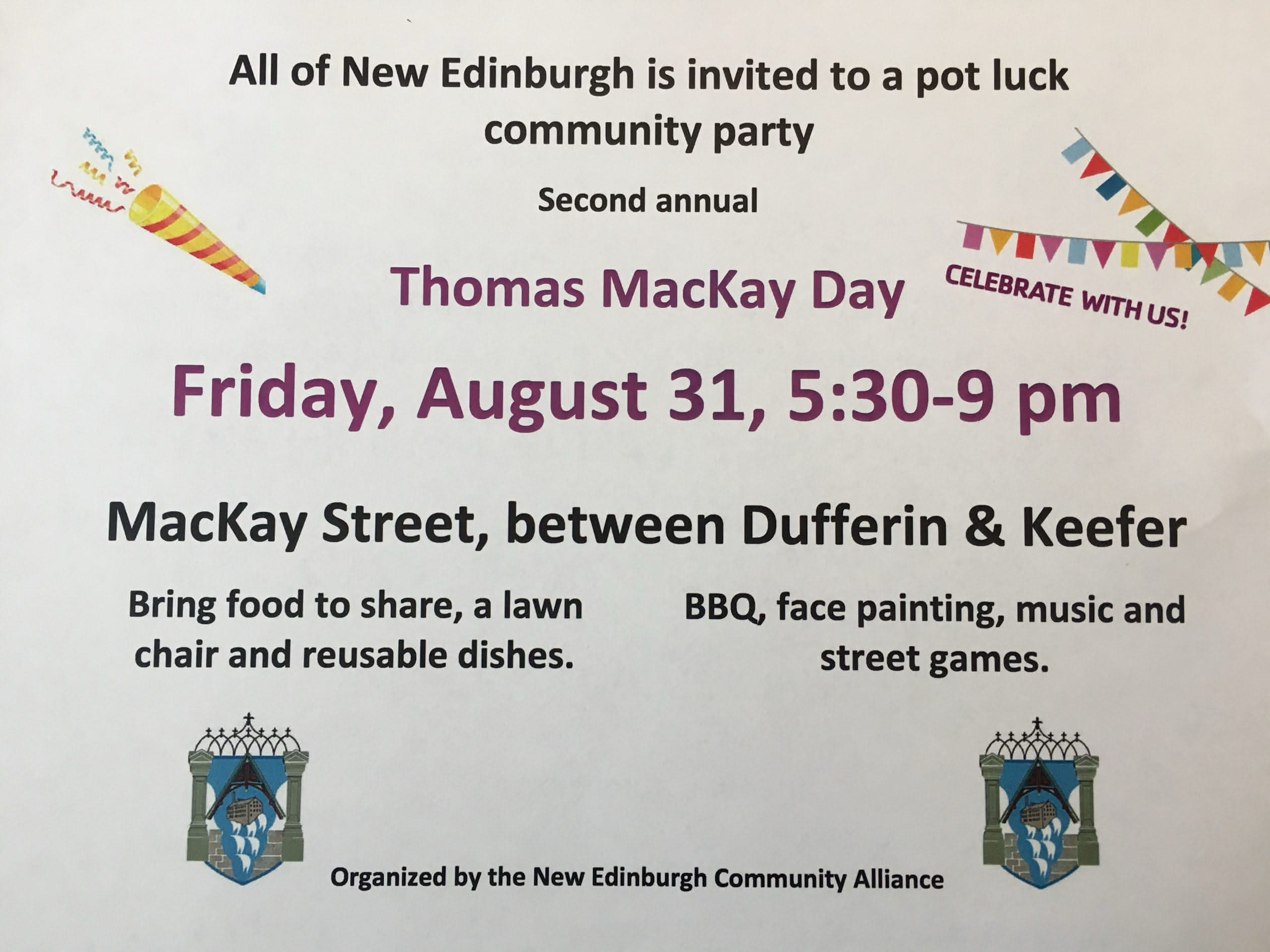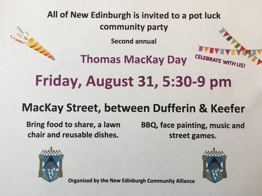 Thomas MacKay Day community party, Aug 31 By Christina Leadlay Posted on August 15, 2018 by Christina Leadlay